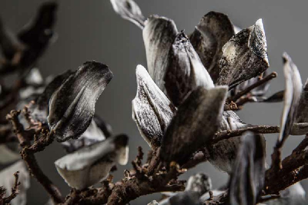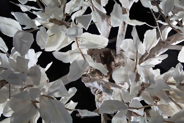 Barbara Billoud, céramiste, crée des pétales et feuilles en porcelaine, fins et translucides. Toutes les feuilles sont fait un par un et sont des pièces uniques.